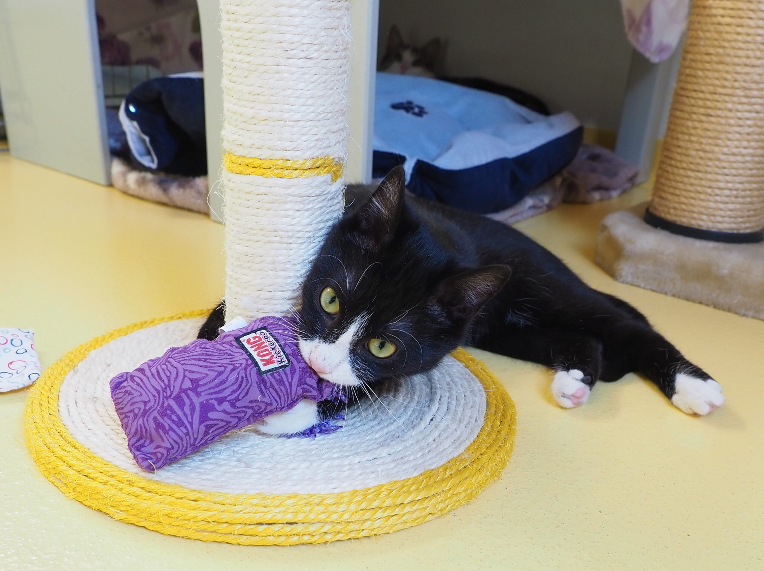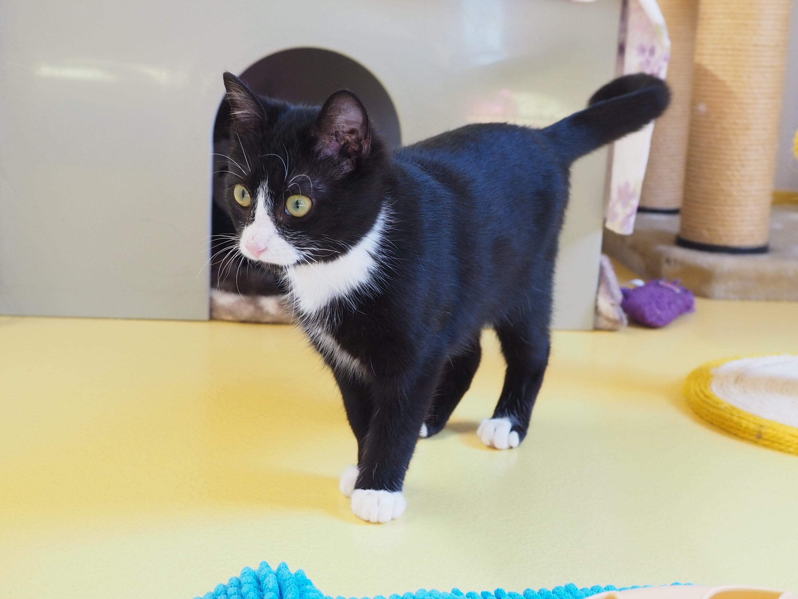 Unser Jungspund Callas ist ein sehr neugieriger und lebensfroher Kater, der noch ganz viel von der Welt entdecken möchte. Er liebt es, seine Umgebung zu erkunden, spielt begeistert mit allen Menschen und geniesst jede Form der Aufmerksamkeit. Callas ist ausserdem sehr sozial und versteht sich wunderbar mit anderen Katzen. Er könnte daher gut als Zweitkatze zu einer ähnlich jungen und verspielten Katze vermittelt werden oder zusammen mit seinem Freund Sibiu ausziehen. Aufgrund seines offenen und unbedarften Wesens wären auch Kinder im neuen Zuhause kein Problem für ihn, solange sie seine Bedürfnisse verstehen und respektieren können.