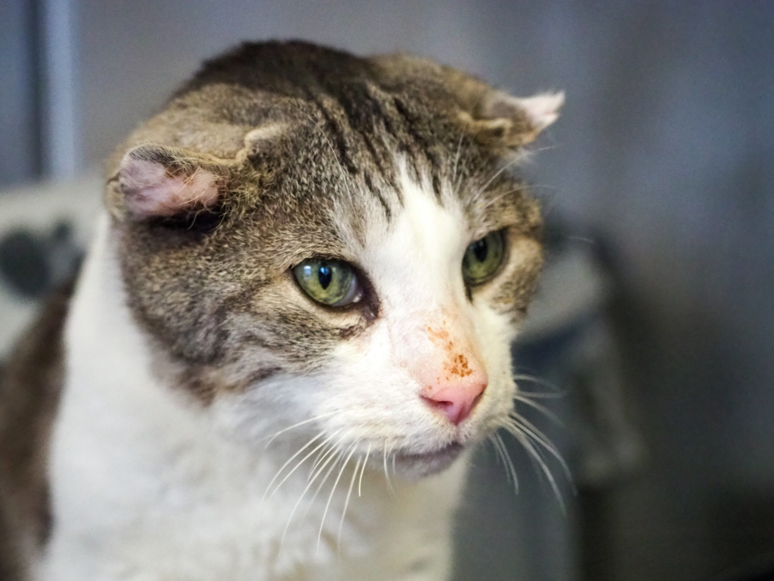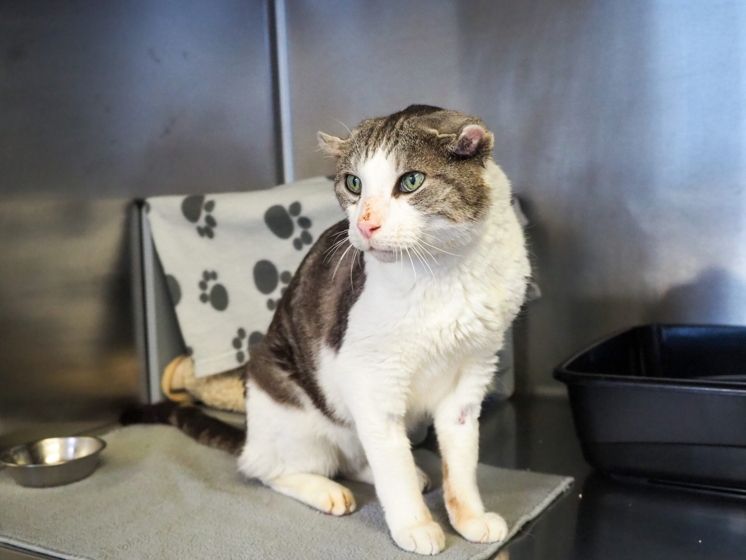 Er befindet sich derzeit in medizinischer Abklärung für weitere Informationen dazu kann ihnen ein Tierpfleger Auskunft geben. Die Verdickungen an den Ohren sind bleibend.