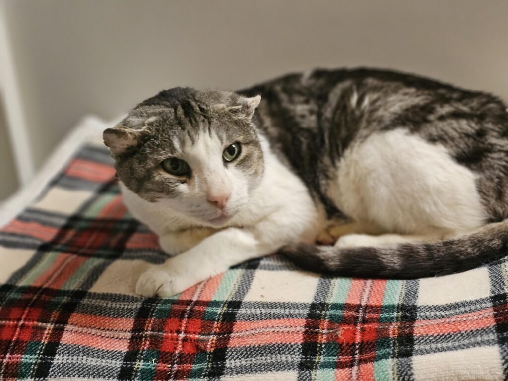 Santi kam als Fundkater zu uns. Anfang Dezember tauchte er immer wieder im Garten der Finder auf. In der Umgebung kannte ihn niemand, und auch auf die aufgegebene Fundanzeige meldete sich bis heute keine Person, die ihn vermisst.