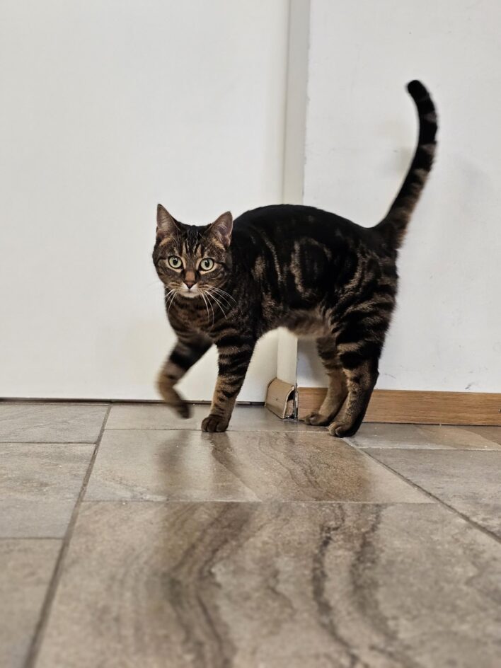 Da Leo ursprünglich von einem Bauernhof stammt, steckt in ihr ein grosser Entdeckergeist. Obwohl sie bisher keinen ausgedehnten Freigang hatte, zeigt sie einen deutlichen Drang nach draussen. Deshalb suchen wir für sie ein Zuhause mit uneingeschränktem Freilauf in ruhiger, ländlicher Umgebung, wo sie in ihrem eigenen Tempo ihre Welt erkunden kann.