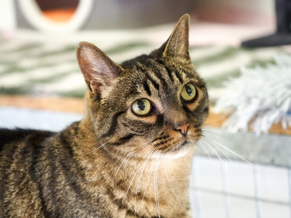 Die hübsche Biene musste ins Katzenheim, weil sie in ihrem ehemaligen Zuhause Mühe mit der Zweitkatze und mit dem Partner der Besitzerin hatte.