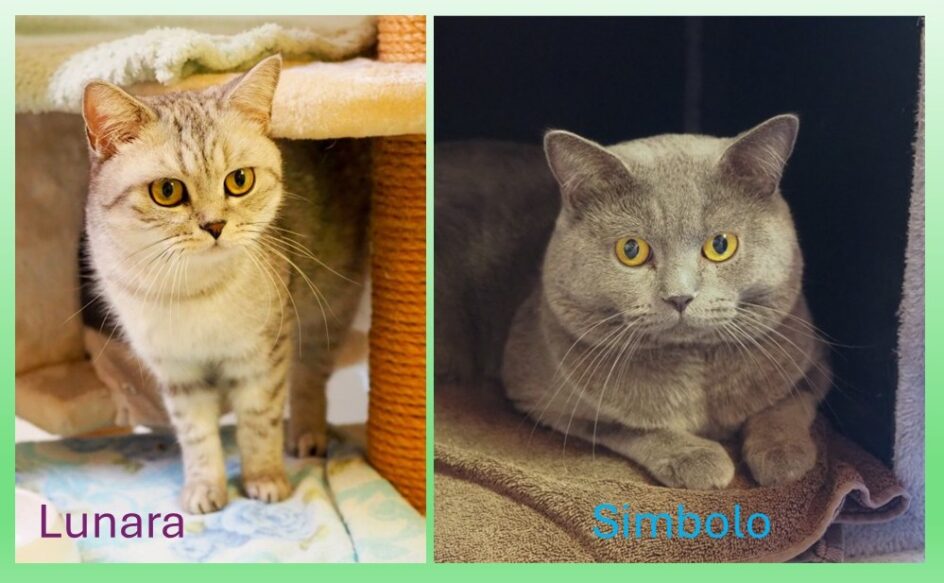 Die beiden Britisch-Kurzhaar-Schönheiten Lunara und Simbolo mussten leider schweren Herzens bei uns abgegeben werden, da ihre bisherigen Besitzer aus privaten Gründen nicht mehr genügend Zeit für sie hatten.