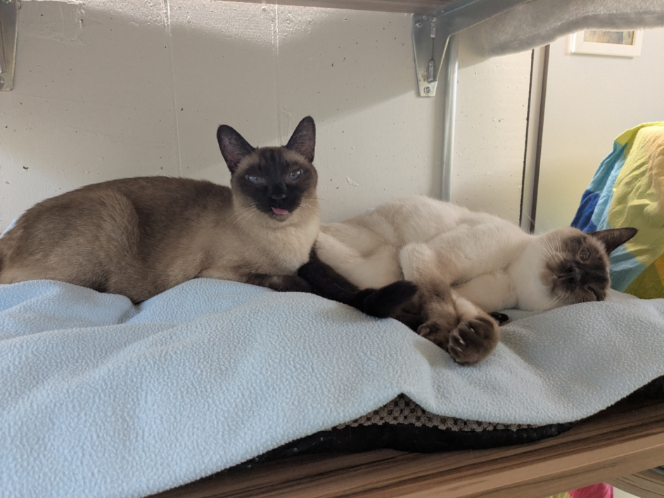 Die beiden Siamkater Carlos und Lucky mussten aus gesundheitlichen Gründen ihrer Besitzerin abgegeben werden, da sie sich nicht mehr um die beiden kümmern konnte.