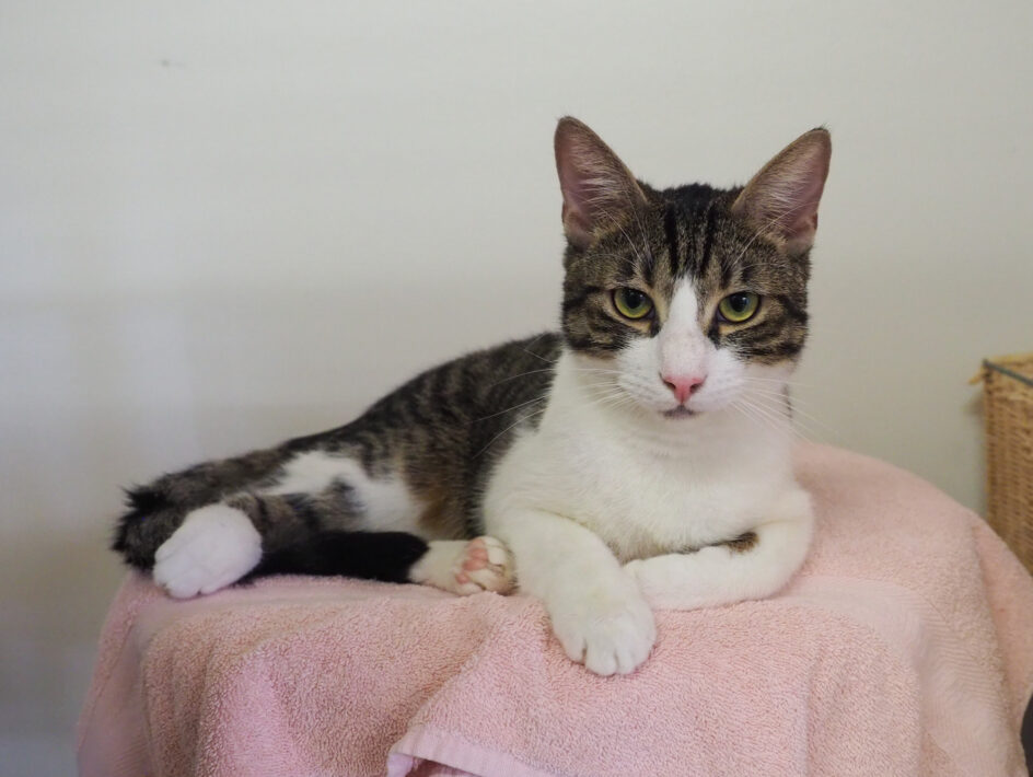 Giorgie wurden im Katzenheim abgegeben, weil die ehemaligen Besitzer keine Zeit mehr für hatte. Eigentlich wurde Giorgie zusammen mit einer anderen Katze abgegeben. Da sich die beiden aber gar nicht verstehen, platzieren wir sie nun alleine.