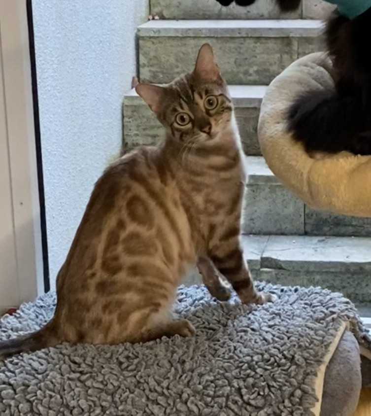Tia Dalma ist eine wunderschöne Bengalkatze, die vor einigen Monaten trächtig und ohne Besitzer draussen gefunden wurde. Leider hat sich niemand für sie gemeldet. Inzwischen sind ihre Kitten alle in liebevolle Zuhause gezogen – nun ist es an der Zeit, dass auch Tia Dalma ihr eigenes Glück findet.
