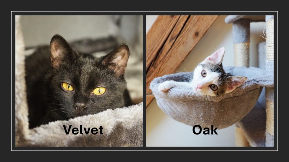 Oak und Velvet sind es gewohnt, draußen unterwegs zu sein und möchten daher unbedingt wieder Freigang in einem sicheren Umfeld. Sie sind so liebevoll und offen, dass sie auch in einer Familie mit Kindern glücklich wären.