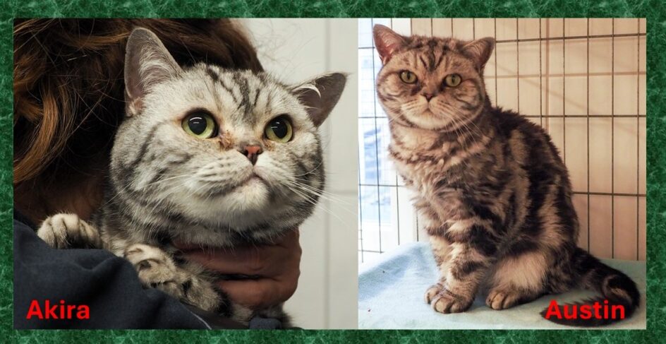 Die beiden Britisch Kurzhaarkatzen Akira und Austin sind schon etwas älter und mussten abgegeben werden, da sich die Lebensumstände ihrer Besitzer verändert haben und schlicht die Zeit für sie fehlte.
